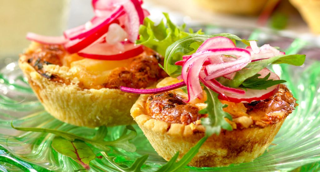 Minipajer med brie och picklad rödlök