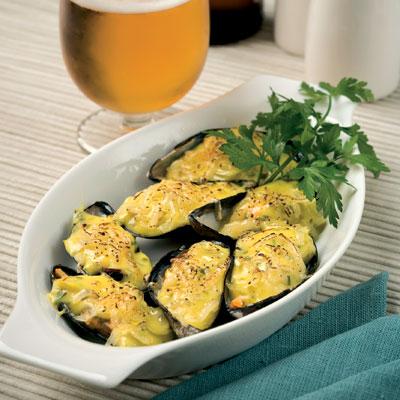 Saffransgratinerade musslor med gräslök