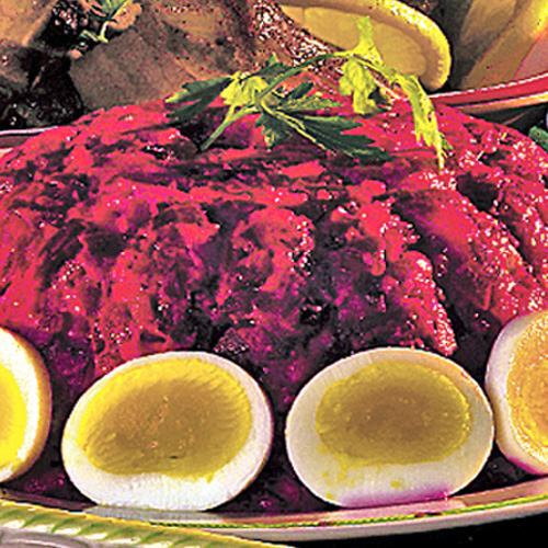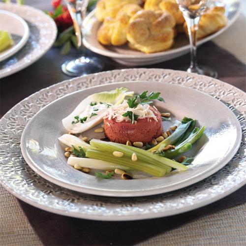 Rödbetstimbal med grönsaker och pepparrotssås