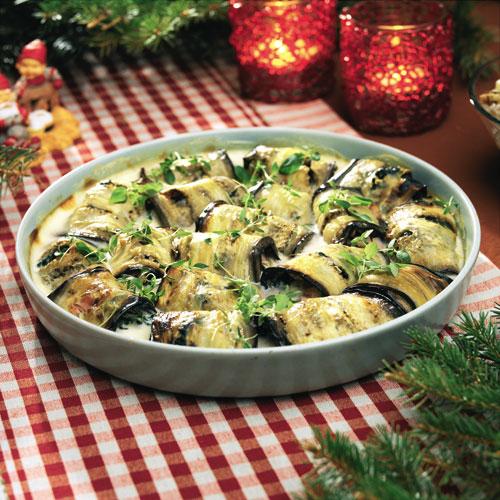 Skinkfyllda auberginerullar