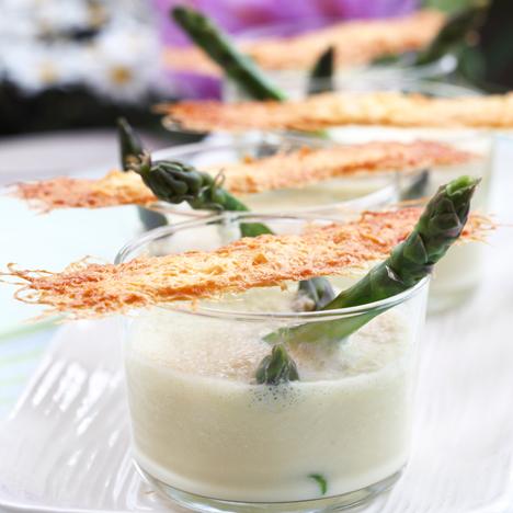 Grön sparrissoppa med parmesanflarn