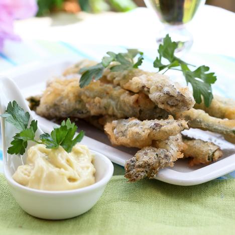 Friterad grön sparris med tryffelmajonnäs