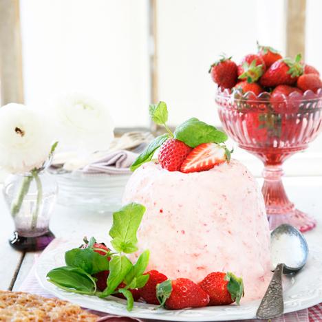 Jordgubbsparfait med dinkelflarn