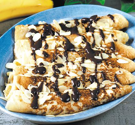Bananfyllda crêpes med chokladsås