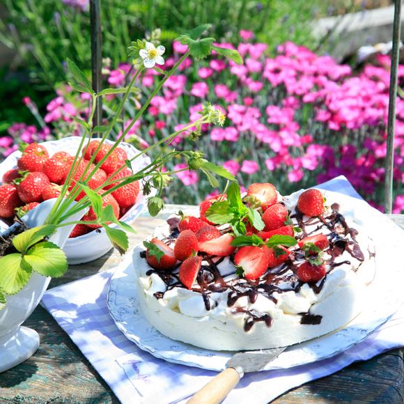Svissglasstårta med jordgubbar