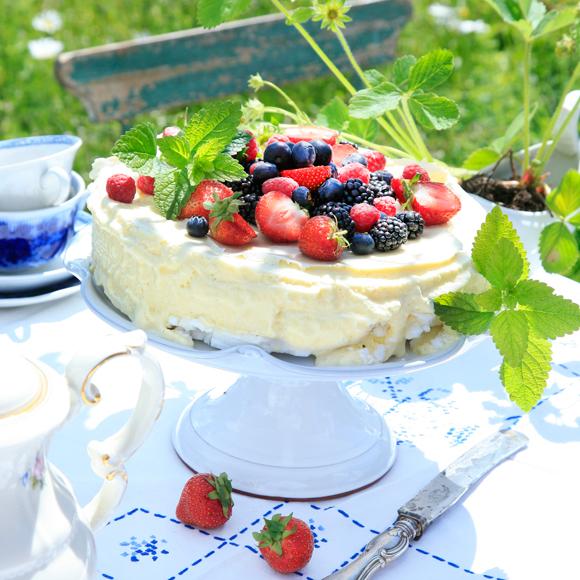 Citronglasstårta med bär