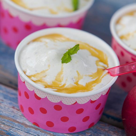 Mjukglass med nektarin och persikocoulis