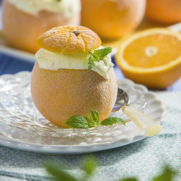 Fryst apelsin fylld med glass