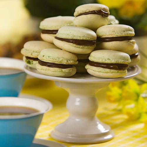 Pistaschmakroner med chokladkräm