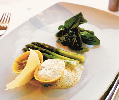 Färsk sparris med murkeltortellini