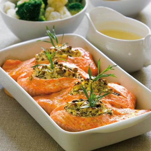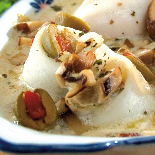 Fylld laxbörs med vitvinssås
