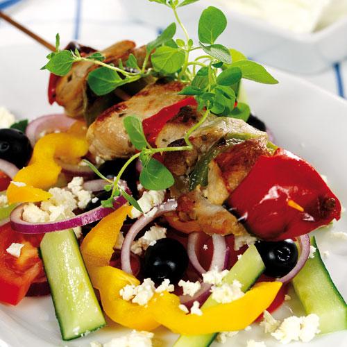 Souvlaki med bondsallad