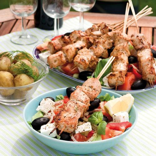 Grekisk bondsallad och kotlettspett
