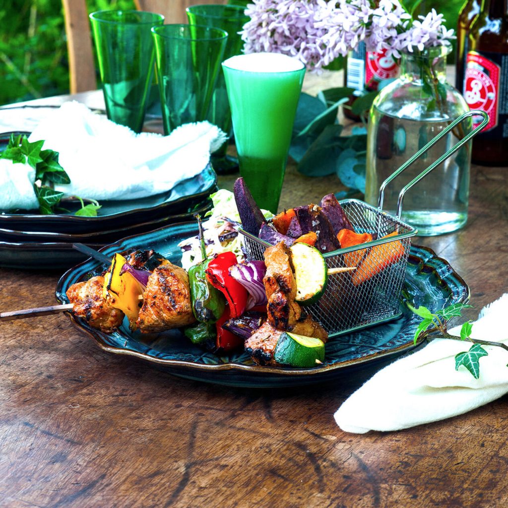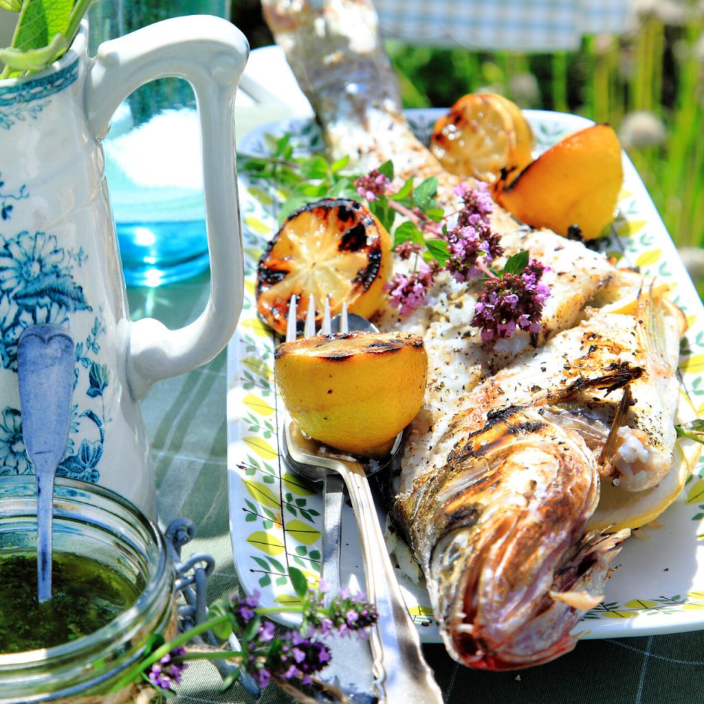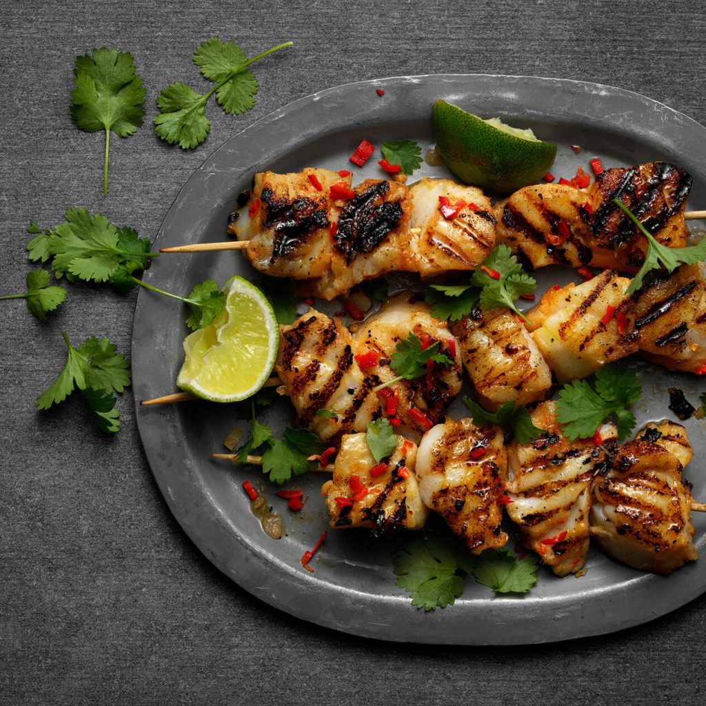 Grillad ananas med kryddig fruktsirap och vaniljglass