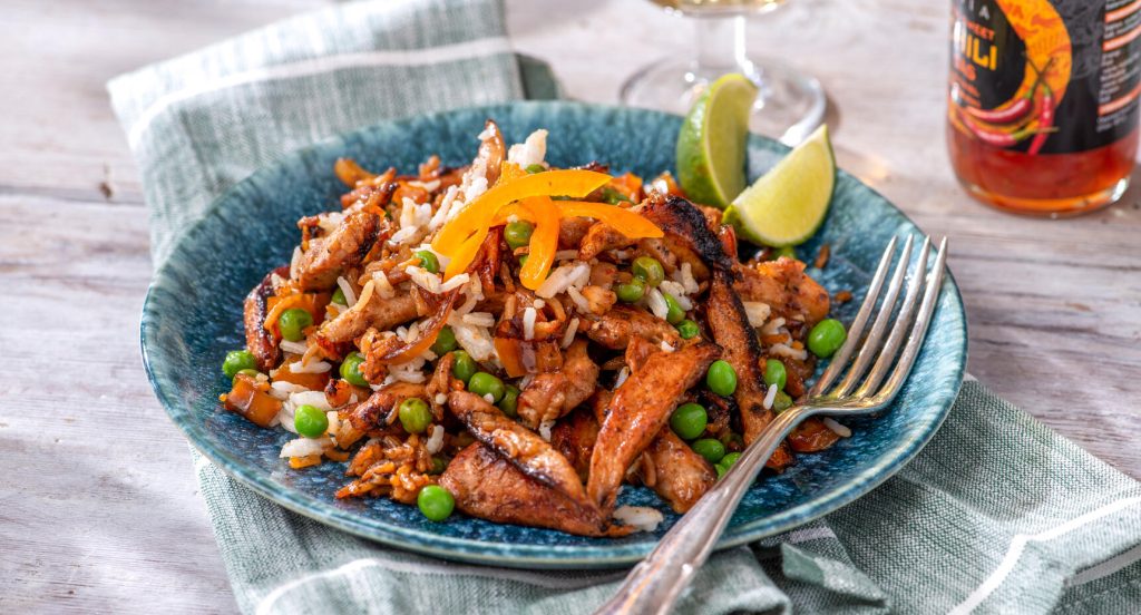 Stekt ris med honungskyckling