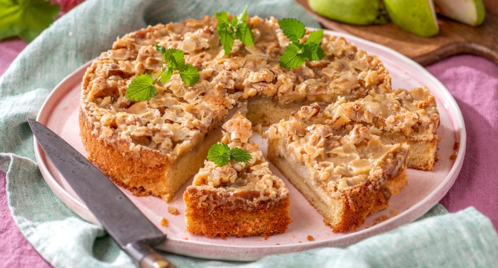 Päronkaka med valnötstosca