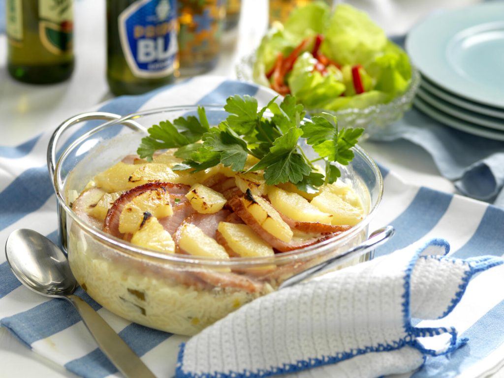 Rotfruktsgratäng med kassler