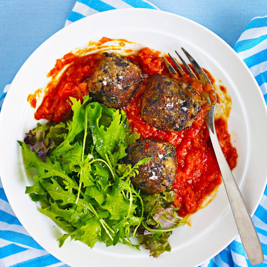 Svarta bönbullar med mandel och koriander