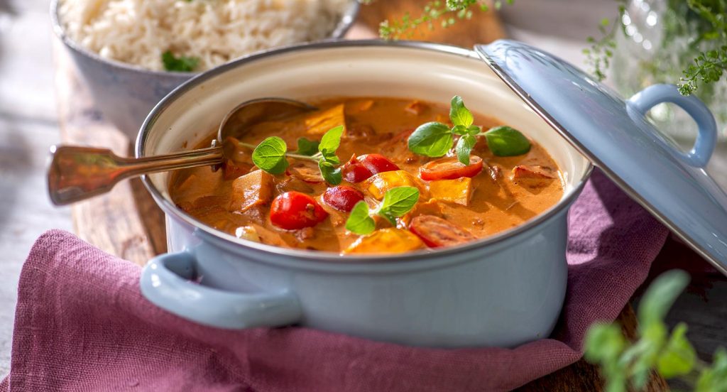 Fläskfilégryta med äpple och mango chutney