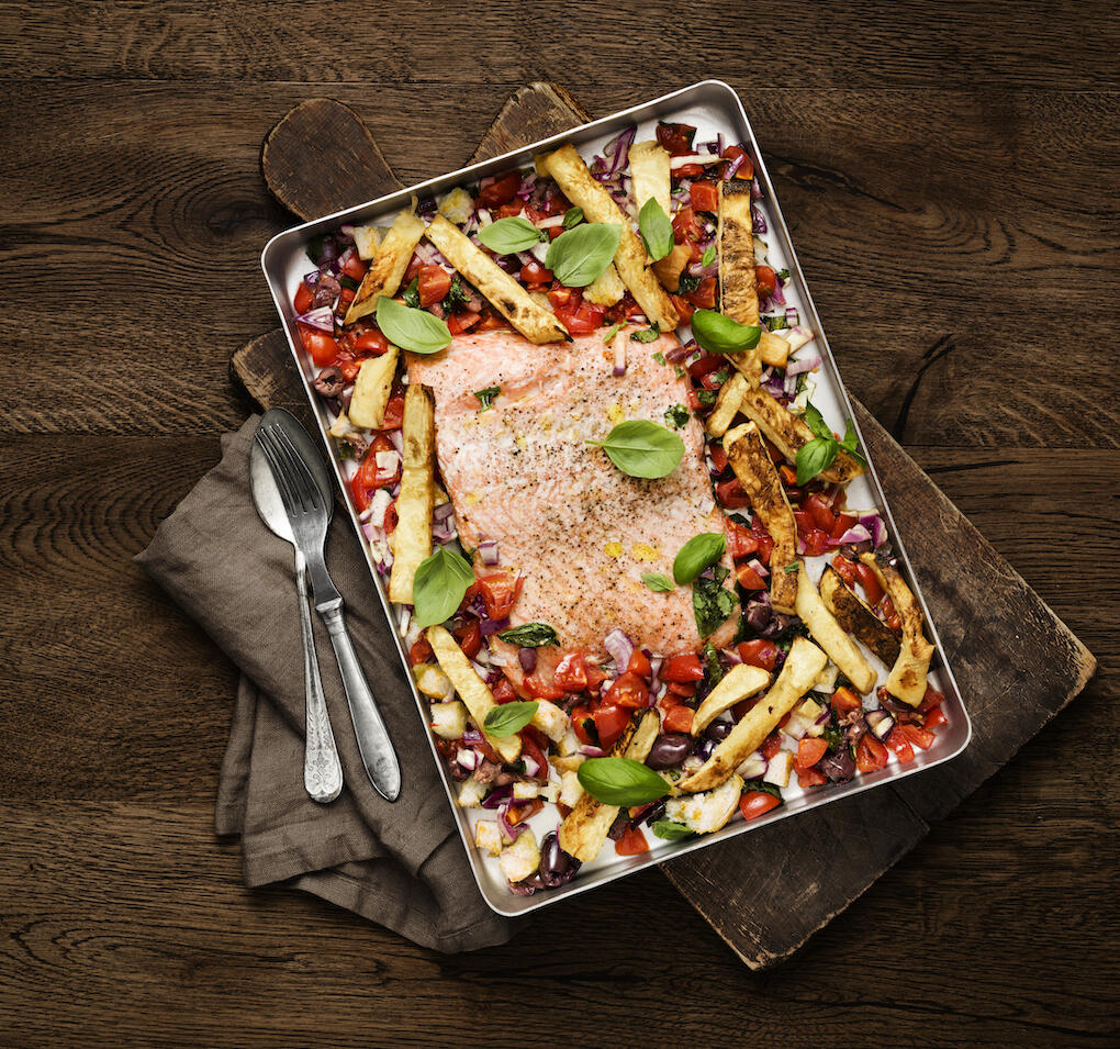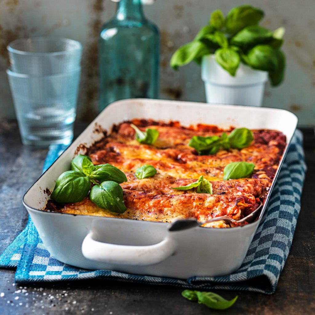 Färsk fylld pasta med ugnsbakade grönsaker och mozzarella