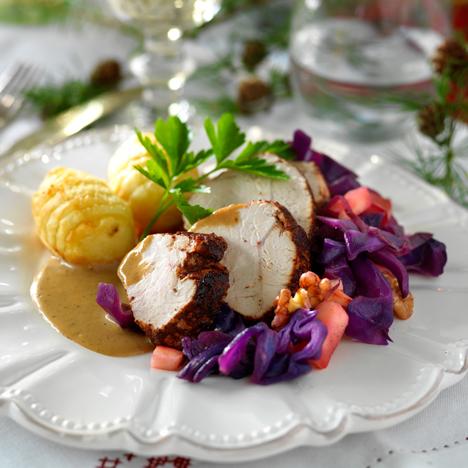 Rödkål med äpple och valnötter