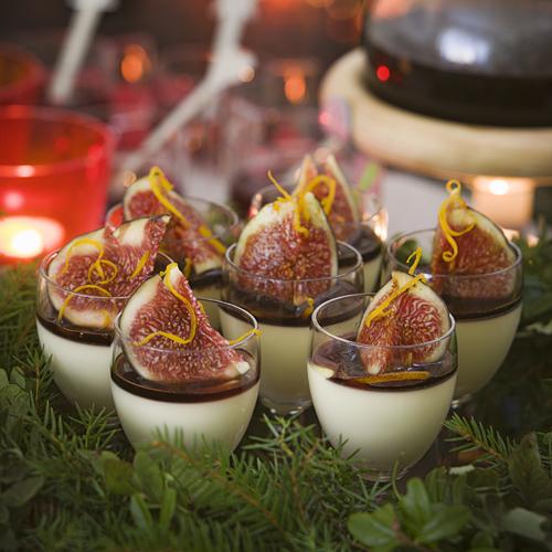 Apelsinpannacotta med fikon och glöggsirap