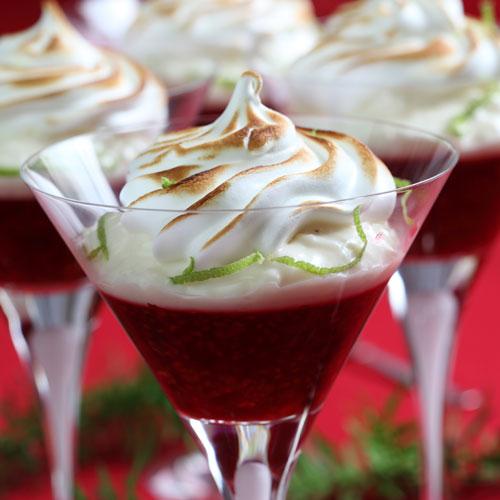 Hallongelé med gröt och marängtopp
