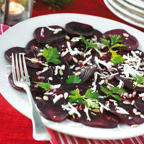 Rödbetscarpaccio med pepparrot