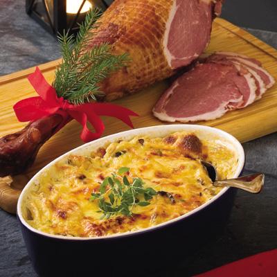 Rotfruktsgratäng till rökt lammfiol