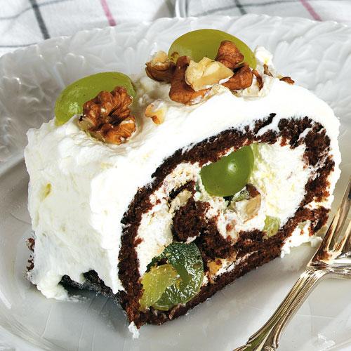 Chokladrulle med vindruvor och nötter