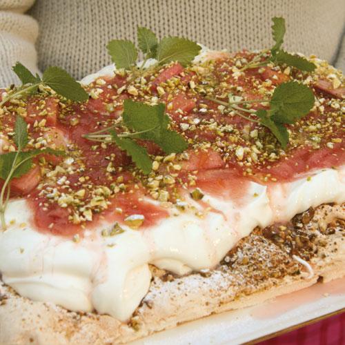 Marängtårta med rabarberkompott