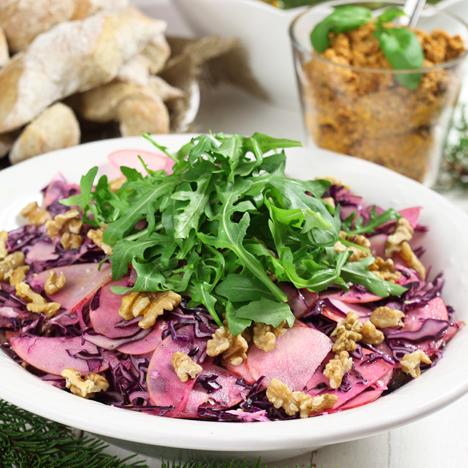 Rödkålssallad med äpple och valnötter
