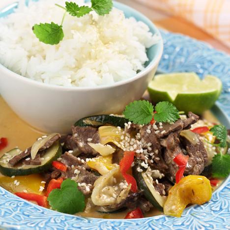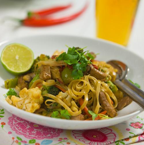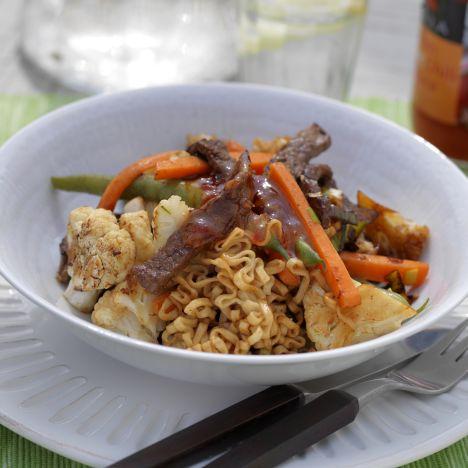 Biffwok med nudlar
