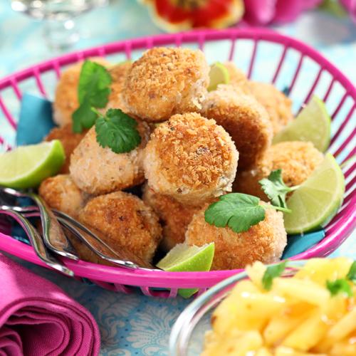 Asiatiska laxkakor med ananassalsa
