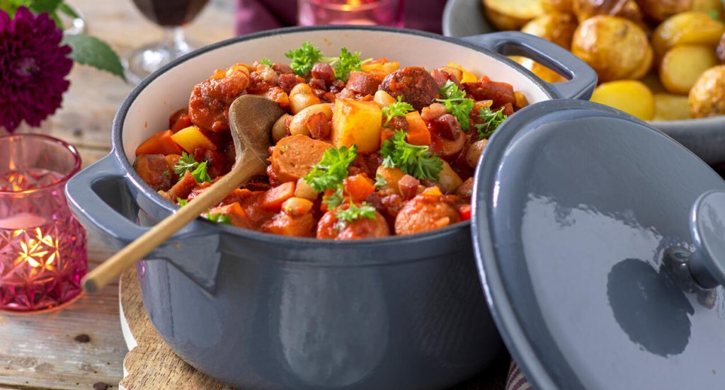 Korvgryta med tomat och pepparrot
