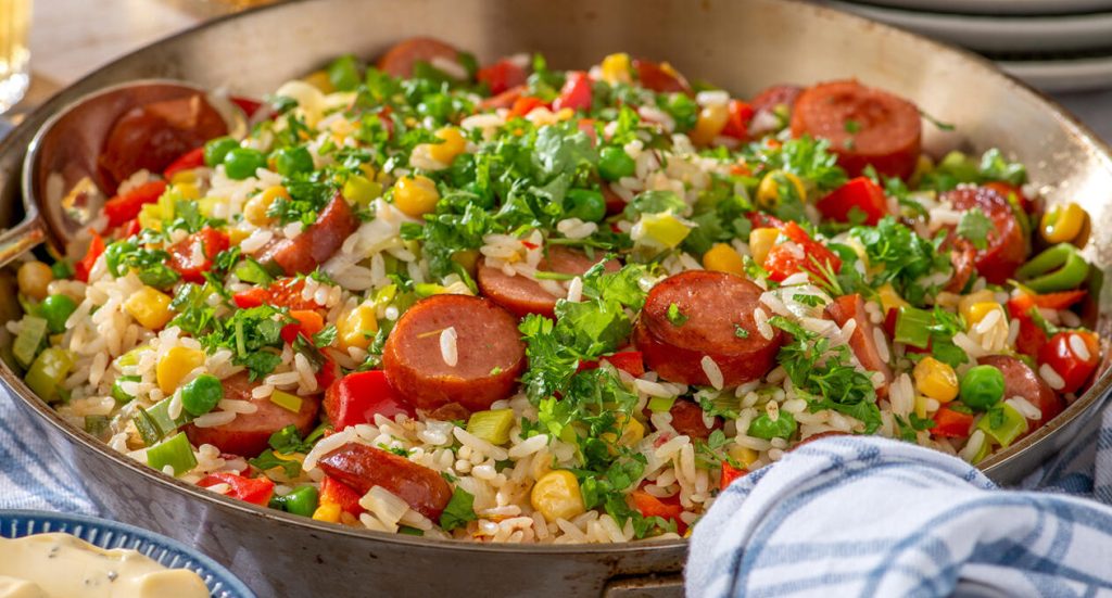 Stekt ris med kryddig korv