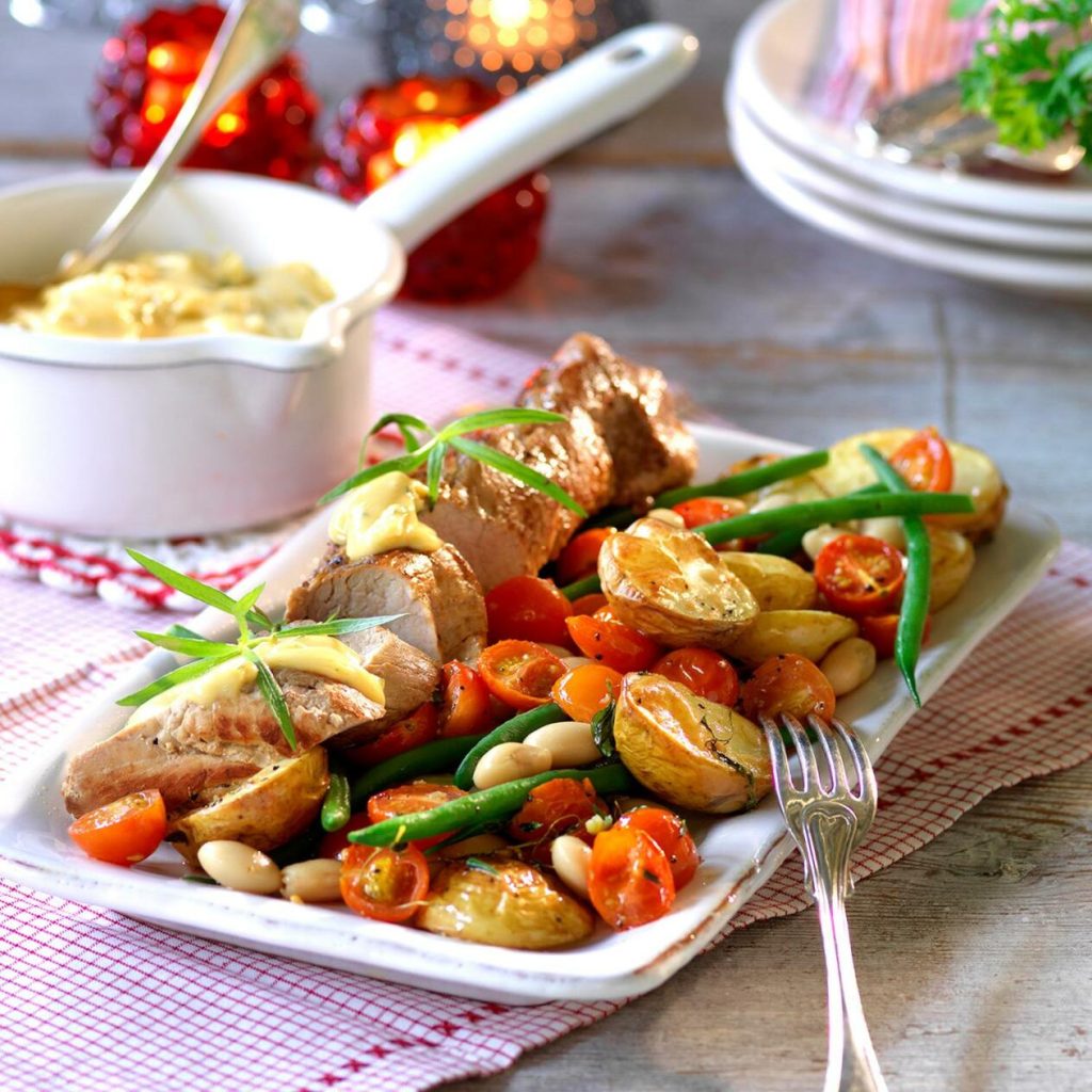 Fläskfilé med bearnaisesås och ljummen bönsallad