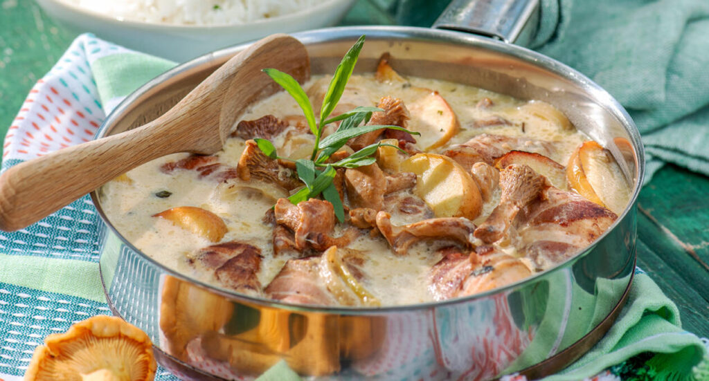 Kycklinggryta med kantarell och äpple