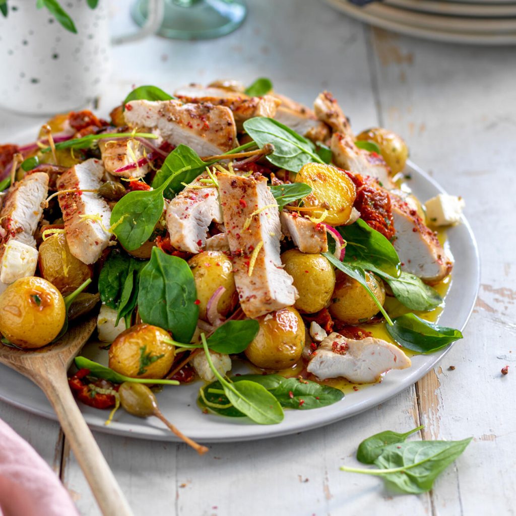 Rostad potatissallad med rosépepparkyckling