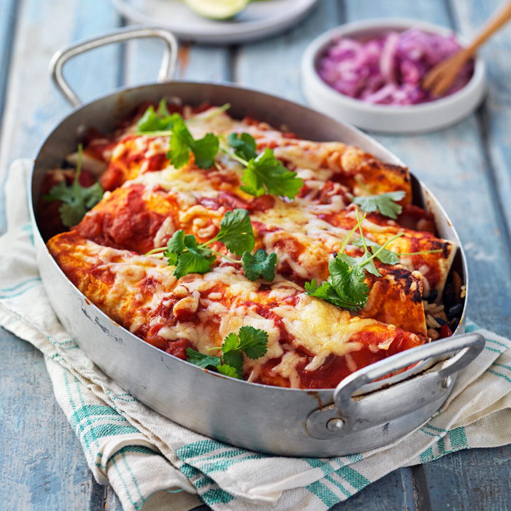 Ostgratinerade tortillarullar