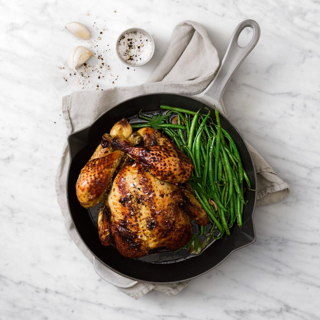 Hel kyckling med ginger beer och gröna bönor