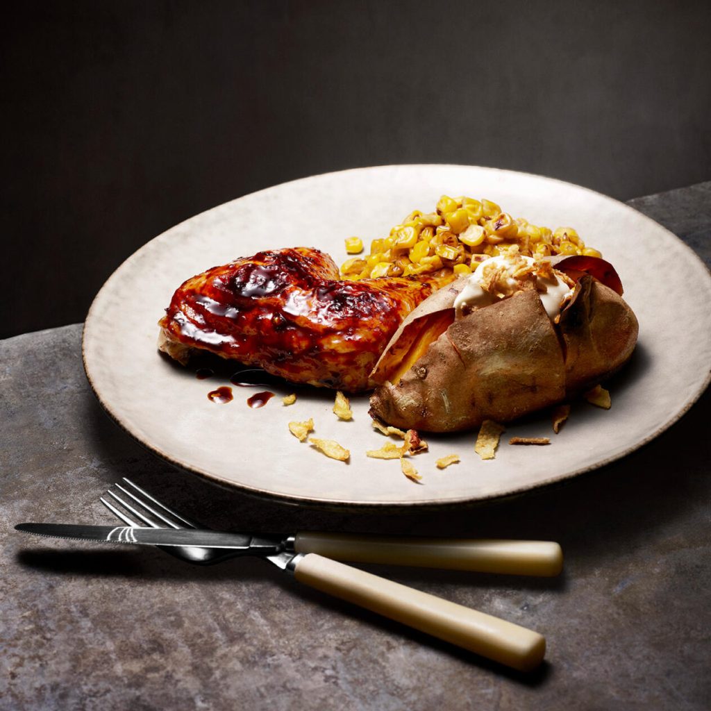 Chilikycklingklubbor med bakad sötpotatis