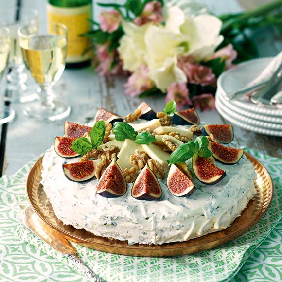 Smörgåstårta med ostkräm och rucolapesto
