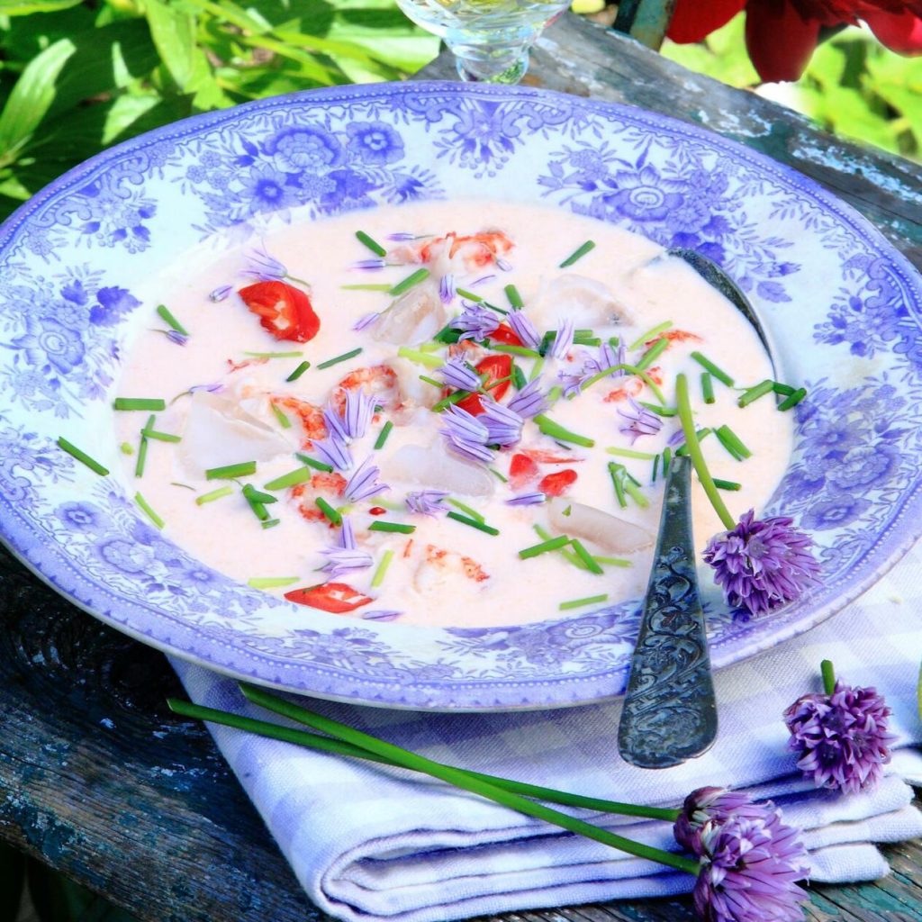 Kall melonsoppa med kräftor
