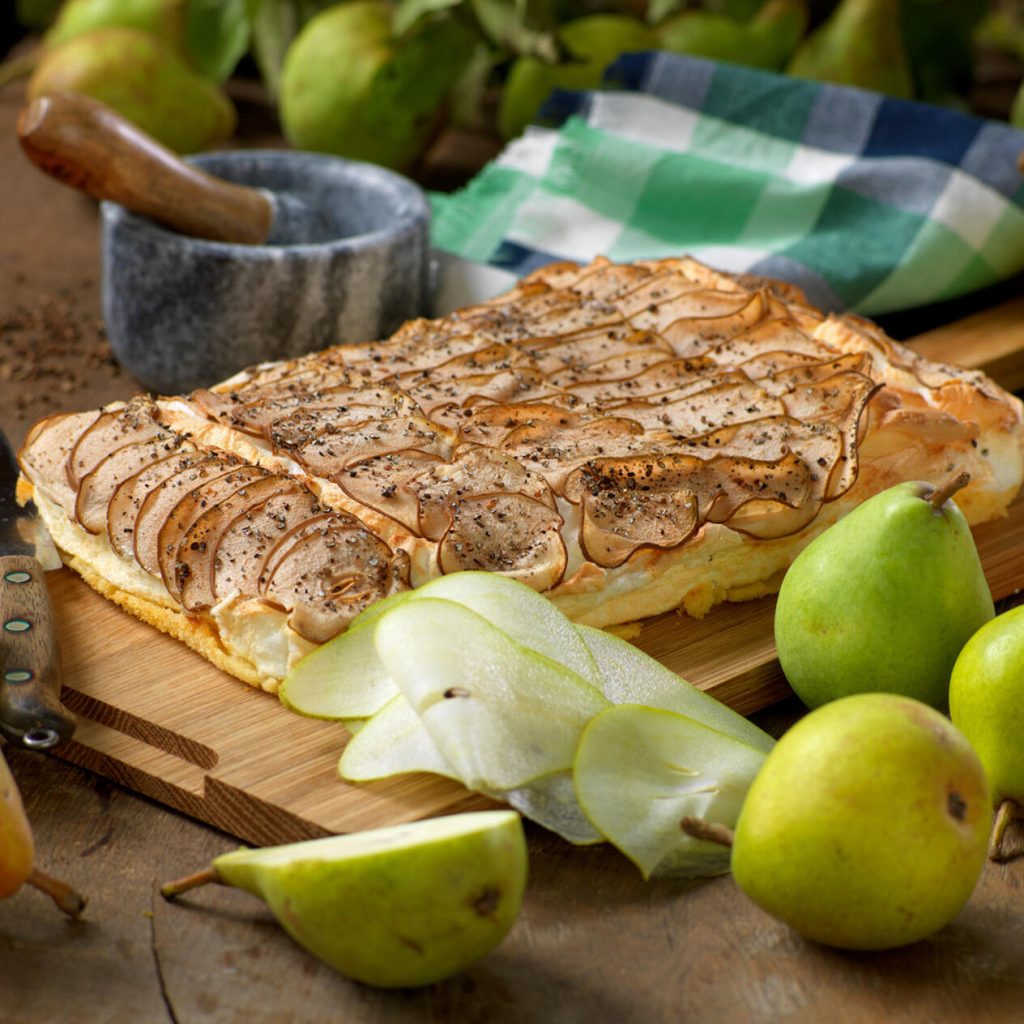 Päronkaka med maräng i långpanna