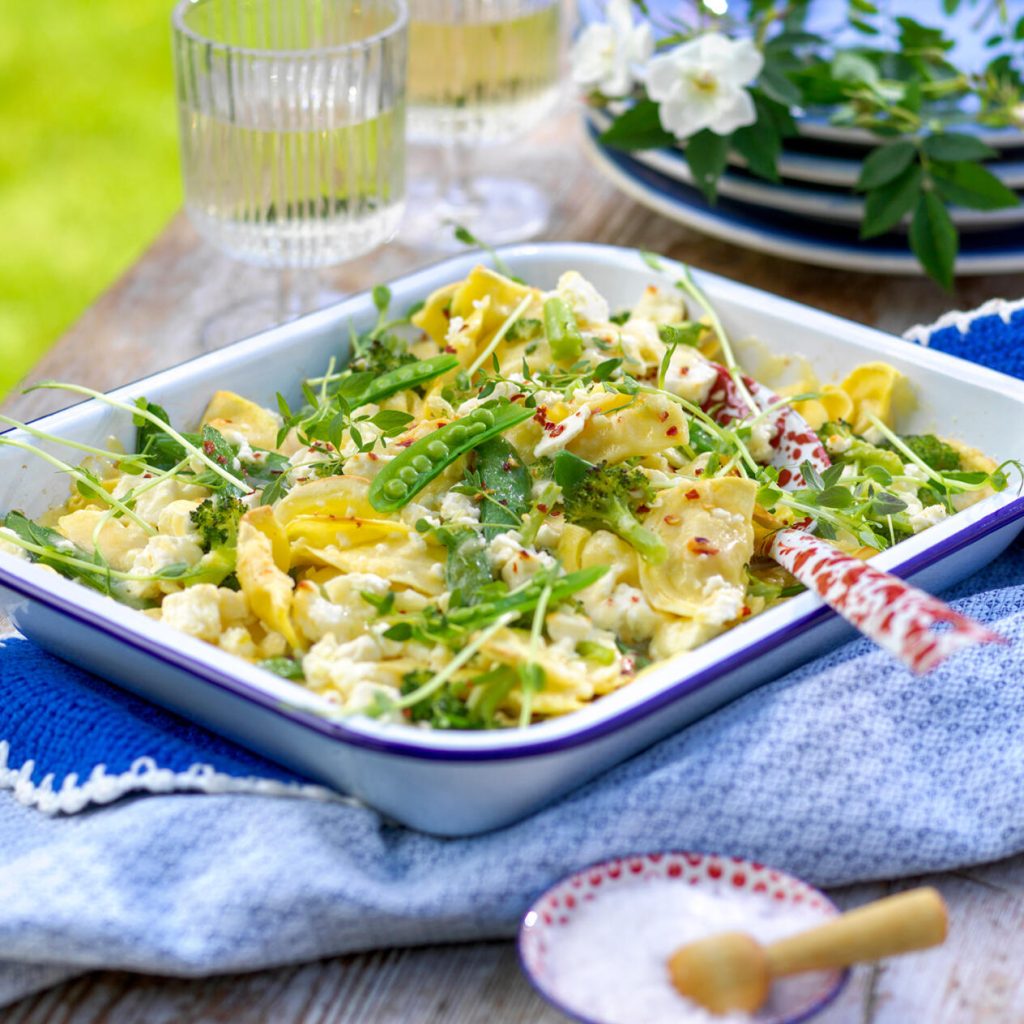 Gratäng med fylld pasta och fetaost