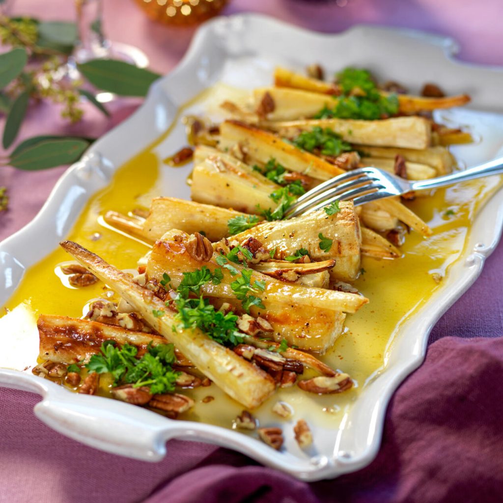 Rostade palsternackor med nötter och brynt smör
