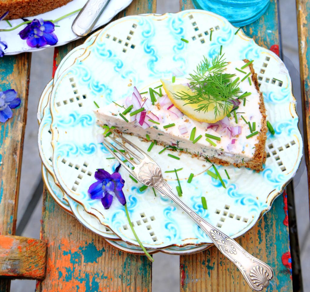 Cheesecake med varmrökt lax och ansjovis