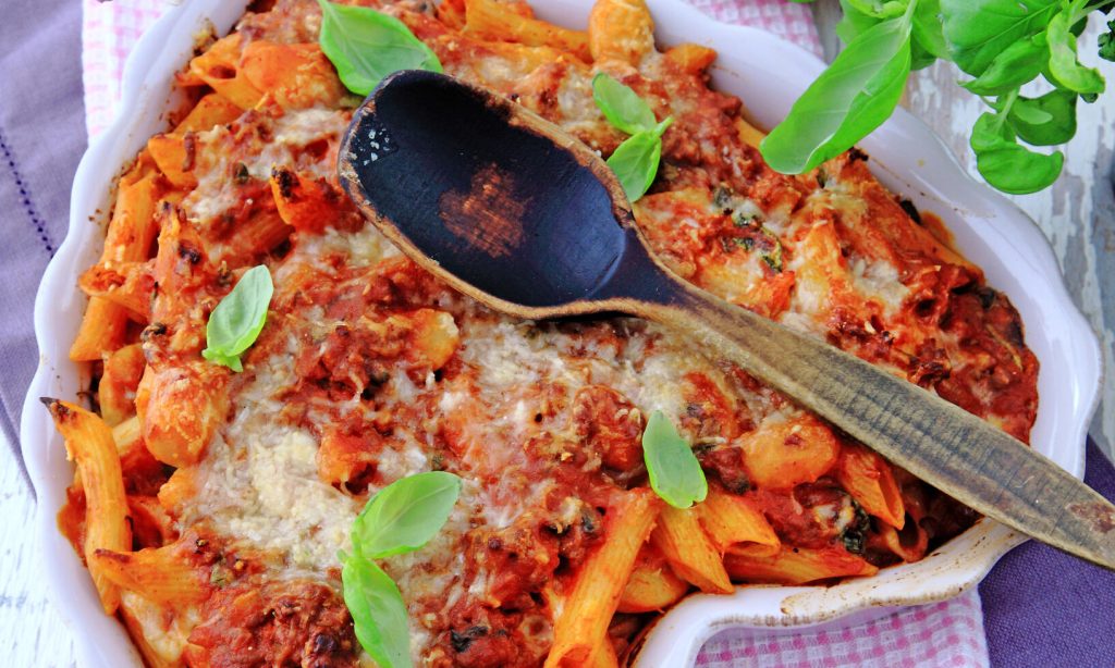 Pennegratäng med bönor och mozzarella
