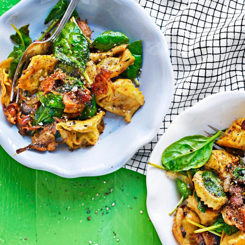 Färsk tortelloni med bacon